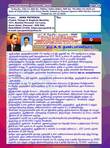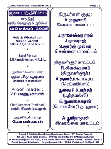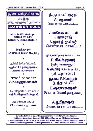 JANA PATRIKAI (Monthly Magazine) December 2025. Pages 1 to 16.
