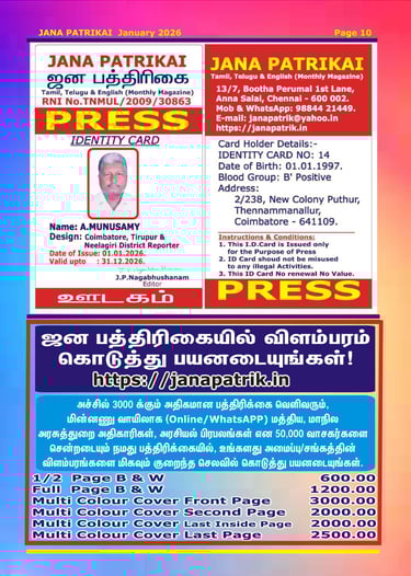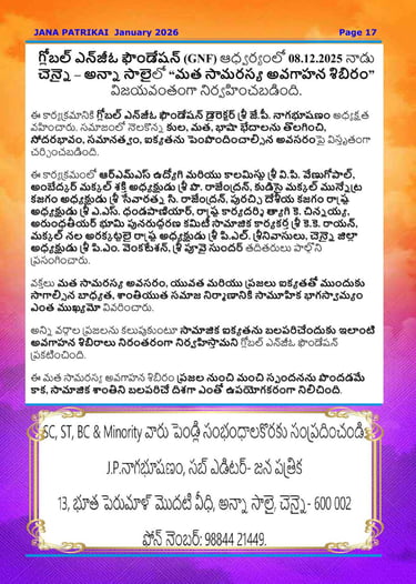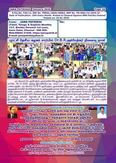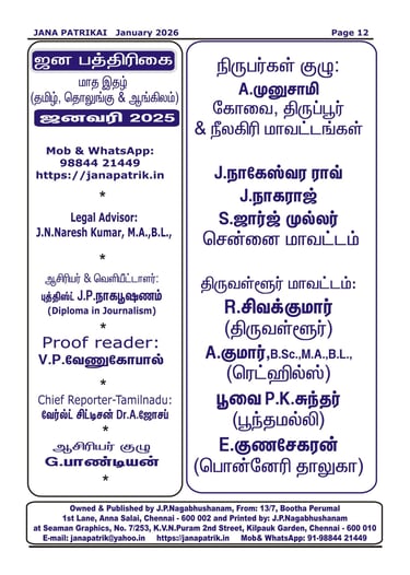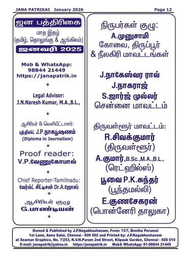 JANA PATRIKAI (Monthly Magazine) January 2026. Pages 1 to 20.