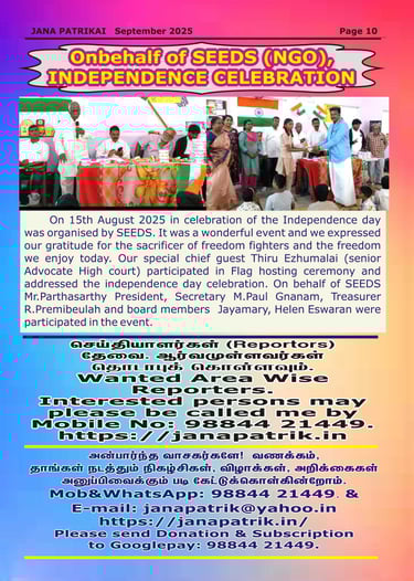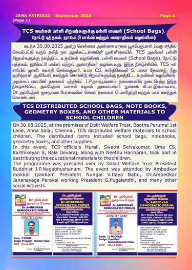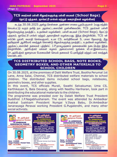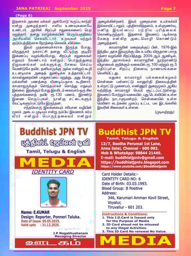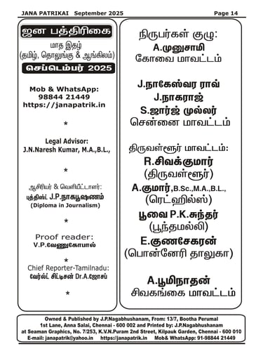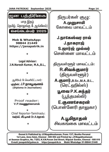 JANA PATRIKAI (Monthly Magazine) September 2025. Pages 1 to 16.