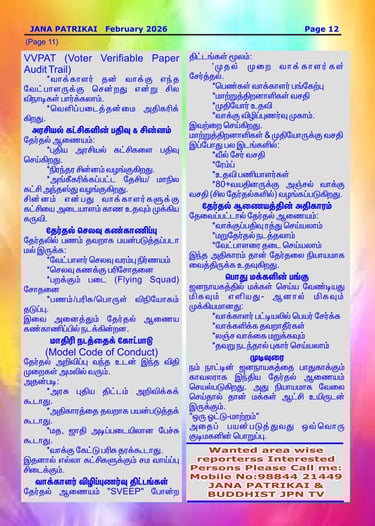 JANA PATRIKAI (Monthly Magazine) February 2026. Pages 1 to 20.